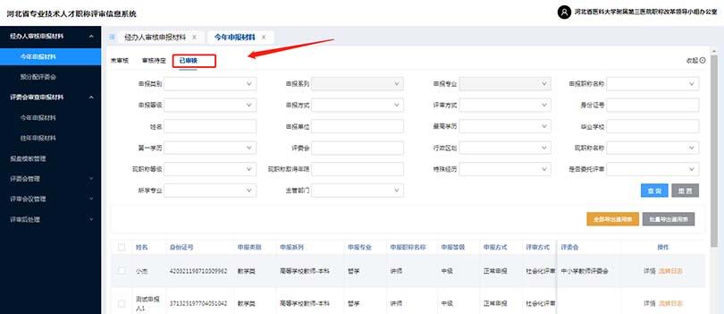 已经本单位审核并提交的申报人信息,可以查看已审核的申报人。