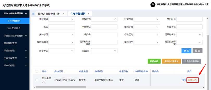 对于材料审核无误的申报人信息,点击【通过】,对于材料有问题的申报人信息,点击【退回修改】,该信息将直接退回至申报人,需按要求修改后重新提交。